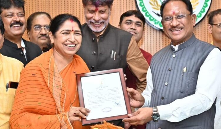 रायपुर, 9 मार्च 2026 : मुख्यमंत्री श्री विष्णु देव साय से आज छत्तीसगढ़ विधानसभा स्थित मुख्यमंत्री कार्यालय कक्ष में नवनिर्वाचित राज्यसभा सदस्य श्रीमती