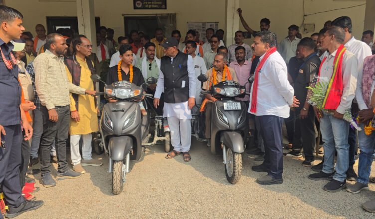 रायपुर, 02 फरवरी 2026 : उपमुख्यमंत्री एवं कवर्धा विधायक श्री विजय शर्मा ने आज विधायक कार्यालय कवर्धा में दो दिव्यांग लाभार्थियों को स्कूटी का वितरण किया। इस अवसर पर उन्होंने बोड़ला विकासखंड के ग्राम मारियाटोला निवासी श्री विद्याधा वर्मा तथा ग्राम नेऊरगाँव निवासी श्री भूपेंद्र चंद्रवंशी को स्कूटी की चाबी सौंपकर उन्हें शुभकामनाएँ दीं। उपमुख्यमंत्री श्री शर्मा ने कहा कि छत्तीसगढ़ सरकार का उद्देश्य दिव्यांगजनों को आत्मनिर्भर बनाना और उनके दैनिक जीवन को सुगम करना है। स्कूटी मिलने से लाभार्थियों को आवागमन में सुविधा होगी तथा वे अपने कार्यों को स्वतंत्र रूप से कर सकेंगे।