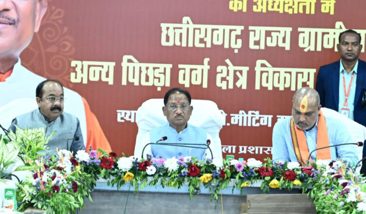 रायपुर, 06 फरवरी 2026 :मुख्यमंत्री श्री विष्णु देव साय की अध्यक्षता में छत्तीसगढ़ राज्य ग्रामीण एवं अन्य पिछड़ा वर्ग क्षेत्र विकास प्राधिकरण की प्रथम बैठक जिला मुख्यालय दुर्ग स्थित लोक निर्माण विभाग के सभाकक्ष में संपन्न हुई। बैठक में प्राधिकरण के अंतर्गत स्वीकृत प्रमुख विकास कार्यों, प्राधिकरण मद से निर्माणाधीन कार्यों के अनुमोदन, प्रावधानित बजट तथा नवीन स्वीकृत कार्यों की विस्तृत समीक्षा की गई।बैठक के दौरान जनप्रतिनिधियों द्वारा प्रस्तुत सुझावों पर विस्तार से चर्चा की गई। बैठक का मुख्य उद्देश्य प्रदेश के पिछड़ा वर्ग समुदाय के सामाजिक, आर्थिक एवं शैक्षणिक उत्थान हेतु संचालित योजनाओं की प्रगति का आकलन करना तथा भावी विकास रणनीतियों का निर्धारण करना था, ताकि विकास का लाभ वास्तविक हितग्राहियों तक प्रभावी रूप से पहुँच सके।