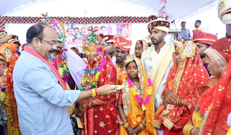 रायपुर. 11 मई 2025 : उप मुख्यमंत्री श्री अरुण साव आज महासमुंद जिले के बागबाहरा विकासखंड के घोयनबहारा में आयोजित सूरमाल साहू समाज के सामूहिक आदर्श विवाह स्वर्ण जयंती समारोह में बतौर मुख्य अतिथि शामिल हुए। समारोह में समाज के 28 जोड़ों का विधिवत विवाह संपन्न हुआ। कार्यक्रम में वर्ष 1975 में इस आयोजन की नींव रखने वाले वरिष्ठ दंपत्तियों को विशेष रूप से सम्मानित किया गया।