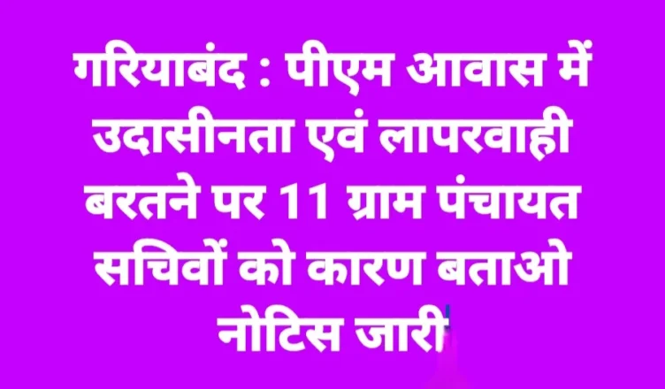 उन्होंने अप्रारंभ कार्यों को जल्द शुरू करने और जारी कार्यों को समय सीमा में पूर्ण करने के निर्देश दिए। कलेक्टर ने समीक्षा बैठक के दौरान पीएम आवास निर्माण कार्यों में उदासीनता, लापरवाही स्वेच्छाचारिता एवं अरुचि दिखाने वाले 11 ग्राम पंचायत सचिवों को मीटिंग के दौरान ही कारण बताओं नोटिस जारी किए। इनमें ग्राम पंचायत दांतबाय कला, कोसमबुड़ा, गुजरा, खरता, हाथबाय, बरबाहरा, मौहाभांठा, बेगरपाला, लोहारी, मरदाकला एवं खरहरी के पंचायत सचिव शामिल है।