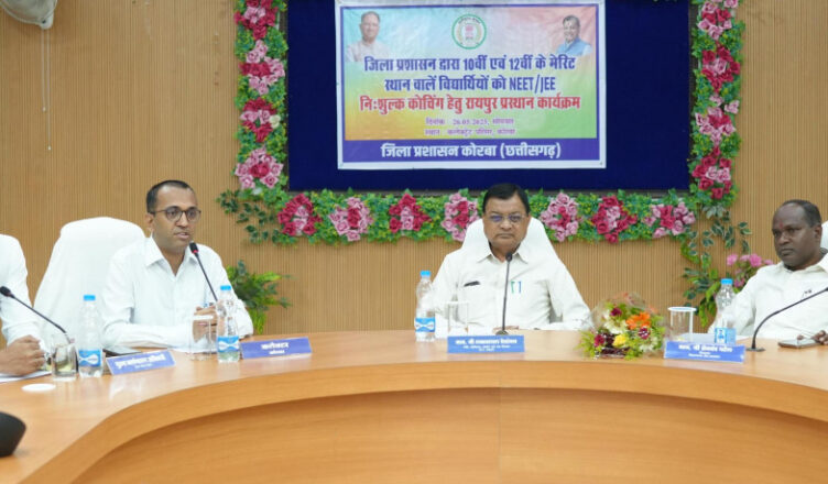 रायपुर। प्रदेश के वाणिज्य, उद्योग एवं श्रम मंत्री लखनलाल देवांगन एवं अन्य अतिथियों की उपस्थिति में आज कलेक्ट्रेट के सभाकक्ष कोरबा में जिले के मेधावी विद्यार्थियों हेतु जेईई, नीट की निःशुल्क प्रशिक्षण हेतु बस से रवाना किया गया। उन्होंने सभी विद्यार्थियों के उज्ज्वल भविष्य की कामना करते हुए निरंतर कड़ी मेहनत कर लक्ष्य प्राप्त करने की शुभकामनाएं दी। मंत्री देवांगन ने कहा कि जो व्यक्ति संघर्ष करता है, उन्हें सफलता जरूर मिलती है। हम सभी मन लगाकर अच्छे से पढ़ाई करें और सफल होकर मुकाम हासिल करते हुए अपने माता-पिता, जिले का नाम रौशन करें। उत्कृष्ट अंक हासिल करने वाले दसवी के 100 तथा बारहवी बोर्ड के 50 विद्यार्थियों को राजधानी रायपुर में कोंचग के लिए भेजा गया।