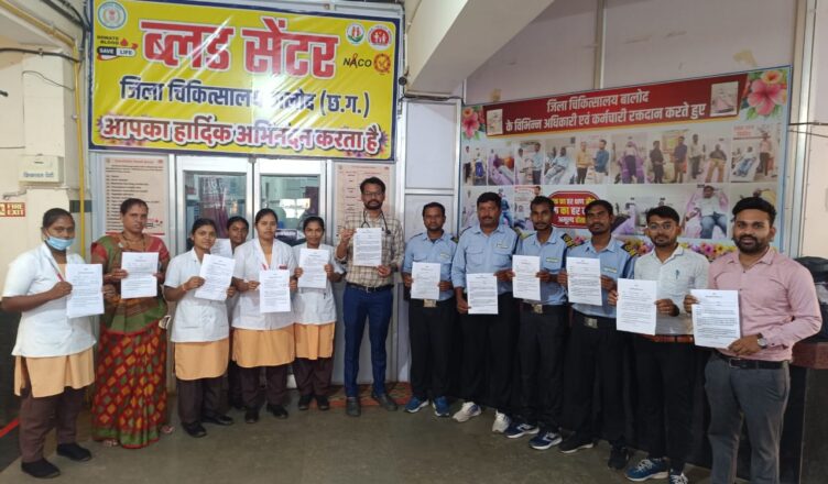 रायपुर, 12 जून 2025 : विश्व रक्तदाता दिवस के अवसर पर छत्तीसगढ़ के सभी आयुष्मान आरोग्य मंदिरों में आयोजित साप्ताहिक आरोग्य मेलों के माध्यम से रक्तदान के प्रति जनजागरूकता बढ़ाने बुधवार को विविध कार्यक्रम आयोजित किए गए। प्रदेशभर के 3807 आरोग्य मेलों में 46 हज़ार से अधिक नागरिकों ने स्वास्थ्य जांच करायी जिसमे करीब 10 हजार से अधिक नागरिकों ने रक्तदान की शपथ ली तथा यह संकल्प दोहराया कि आवश्यकता पड़ने पर किसी भी जरूरतमंद को समय पर रक्तदान कर जीवन बचाने में योगदान देंगे।