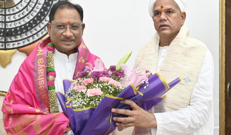 रायपुर, 14 जून 2025 :मुख्यमंत्री श्री विष्णु देव साय से आज मुख्यमंत्री निवास कार्यालय में पं. श्री रविशंकर महाराज रावतपुरा सरकार जी ने सौजन्य मुलाकात की। इस दौरान श्री साय ने उन्हें कोसा वस्त्र एवं बेल मेटल से बने स्मृति चिन्ह भेंटकर आत्मीय स्वागत किया।