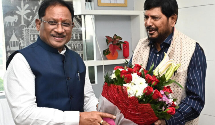 रायपुर, 1 जुलाई 2025 : मुख्यमंत्री श्री विष्णु देव साय से आज मंत्रालय महानदी भवन में केंद्रीय सामाजिक न्याय एवं अधिकारिता राज्य मंत्री श्री रामदास अठावले ने सौजन्य मुलाकात की। मुख्यमंत्री श्री साय ने शॉल, श्रीफल एवं स्मृति चिन्ह भेंट कर उनका आत्मीय स्वागत किया।