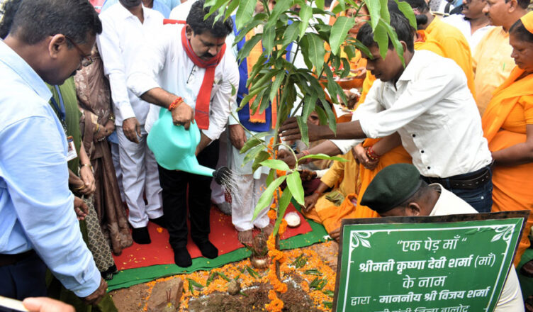 कार्यक्रम को संबोधित करते हुए सांसद श्री भोजराज नाग ने कार्यक्रम की सराहना करते हुए कहा कि जलवायु परिवर्तन के फलस्वरूप उसका दुष्प्रभाव मानव जाति के अलावा संपूर्ण जीव-जगत पर पड़ रहा है। उन्होंने कहा कि हमारे पुराणों में उल्लेख किया गया है कि एक पेड़ लगाने के पुनीत कार्य को दस पुत्रों के बराबर माना गया है। उन्होंने प्रधानमंत्री श्री नरेन्द्र मोदी के ’एक पेड़ माँ के नाम’ अभियान से प्रत्येक नागरिक जुड़ने की अपील की। इस मौके पर उप मुख्यमंत्री श्री विजय शर्मा और सांसद श्री भोजराज नाग सहित सभी अतिथियों, आमनागरिकों, अधिकारी-कर्मचारियों ने एक पेड़ मां के नाम अभियान के अंतर्गत अपनी-अपनी माताओं के नाम से पौध रोपण किया।