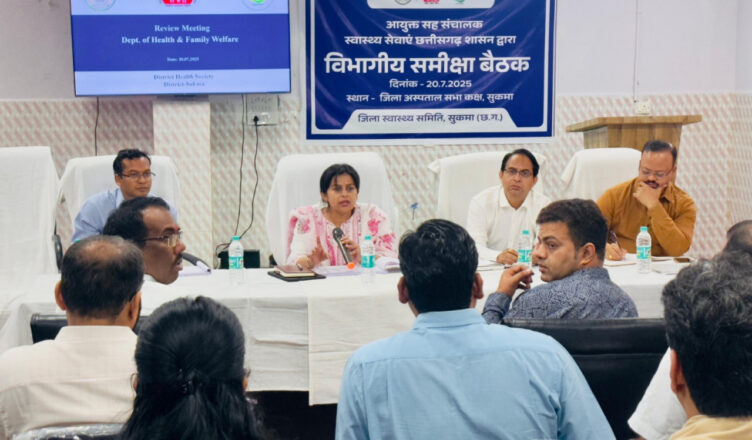 रायपुर, 21 जुलाई 2025 : स्वास्थ्य विभाग की योजनाओं की प्रगति और क्रियान्वयन की समीक्षा हेतु जिला अस्पताल सुकमा के सभाकक्ष में आयुक्त सह संचालक स्वास्थ्य सेवाएं डॉ. प्रियंका शुक्ला की अध्यक्षता में समीक्षा बैठक आयोजित की गई। बैठक में स्वास्थ्य विभाग की प्रमुख योजनाओं, उनके लक्ष्यों, प्राप्तियों और कार्यों की विस्तार से चर्चा की गई।