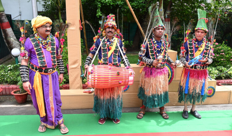 रायपुर, 24 जुलाई 2025 : मुख्यमंत्री निवास में हरेली तिहार के अवसर पर पारंपरिक लोक यंत्रों की गूंज और छत्तीसगढ़ की सांस्कृतिक छटा के साथ सुंदर नाचा का आयोजन किया जा रहा है। पूरा परिसर उत्सवमय वातावरण से सराबोर है। ग्रामीण परिवेश की जीवंत छवि इस सुंदर माहौल में साकार हो गई है। कहीं सुंदर वस्त्रों में सजे राउत नाचा कर रहे कलाकारों की रंगत बिखरी है, तो कहीं आदिवासी कलाकार पारंपरिक लोक नृत्य की मोहक प्रस्तुतियाँ दे रहे हैं। छत्तीसगढ़ का अद्भुत ग्रामीण लैंडस्केप अपनी संपूर्ण सांस्कृतिक सुंदरता के साथ यहां सजीव रूप में अवतरित हो गया है। विभिन्न प्रकार की लोक धुनों में छत्तीसगढ़ी संगीत का माधुर्य अपने चरम पर है।