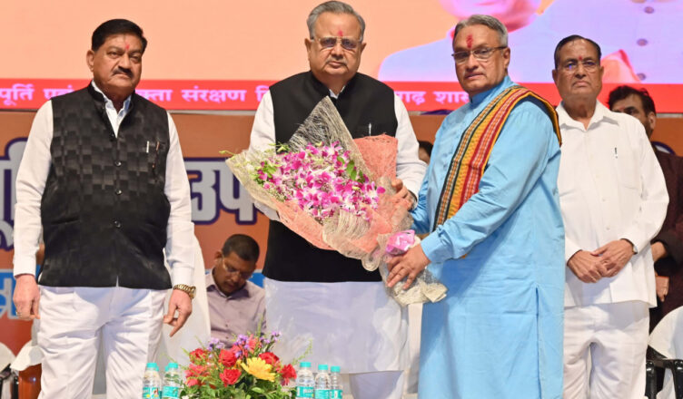 रायपुर, 25 जुलाई 2025 : छत्तीसगढ़ विधानसभा अध्यक्ष डॉ. रमन सिंह आज रायपुर के दीनदयाल उपाध्याय ऑडिटोरियम में छत्तीसगढ़ राज्य खाद्य आयोग के नवनियुक्त अध्यक्ष श्री संदीप शर्मा के शपथ ग्रहण समारोह में शामिल हुए। उन्होंने कहा कि किसानों के हित में लगातार संघर्ष करते हुए श्री शर्मा ने संघर्षशील जनप्रतिनिधि के रूप में अपनी छवि बनाई है। सरकार ने उन्हें पीडीएस के तहत राशन कार्डधारियों को गुणवत्तापूर्ण प्रतिमाह राशन मिले, इसके निरीक्षण और परीक्षण के लिए महत्वपूर्ण जिम्मेदारी दी है। डॉ. सिंह ने कहा कि गरीबों और प्राथमिकता वाले परिवारों को गुणवत्तायुक्त राशन मिले, यह महत्वपूर्ण जिम्मेदारी है। उन्होंने नवनियुक्त अध्यक्ष को नई जिम्मेदारी के लिए बधाई और शुभकामनाएं दी।