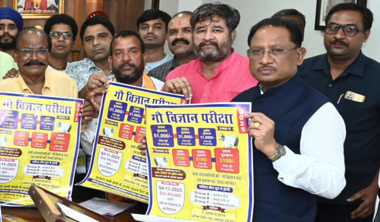 रायपुर, 28 जुलाई 2025 :मुख्यमंत्री श्री विष्णु देव साय ने आज अपने निवास कार्यालय में छत्तीसगढ़ राज्य गौ संरक्षण एवं संवर्धन समिति द्वारा आयोजित ‘गौ विज्ञान परीक्षा अभियान 2025’ का शुभारंभ किया। इस अवसर पर उन्होंने अभियान के पोस्टर का अनावरण किया और समिति के सदस्यों को इस पुण्य कार्य के लिए शुभकामनाएँ एवं बधाई दी।