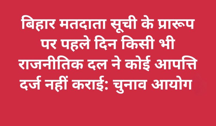 अगस्त 02, पटना (SHABD) : निर्वाचन आयोग ने कहा है कि बिहार में मतदाता सूची के प्रारूप के प्रकाशन के बाद, 24 घंटों में किसी भी राजनीतिक दल ने कोई भी दावा या आपत्ति दर्ज नहीं कराई है। आयोग ने कहा है कि सभी राजनीतिक दलों ने मिलकर पात्र मतदाताओं के नाम जोड़ने और अपात्र मतदाताओं के नाम हटाने के लिए कोई दावा या आपत्ति दर्ज नहीं की है।