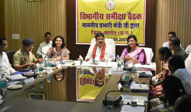 रायपुर, 04 अगस्त 2025 : उपमुख्यमंत्री एवं बालोद जिले के प्रभारी मंत्री श्री विजय शर्मा ने आज सयुक्त जिला कार्यालय सभाकक्ष में जिला स्तरीय अधिकारियों की समीक्षा बैठक लेकर जिले में शासकीय योजनाओं के क्रियान्वयन की स्थिति की विस्तृत समीक्षा की। उन्होंने अधिकारियों को पूरी प्रतिबद्धता के साथ कार्य करते हुए निर्धारित समयावधि में शासकीय योजनाओं का समुचित क्रियान्वयन सुनिश्चित करने के निर्देश दिए।