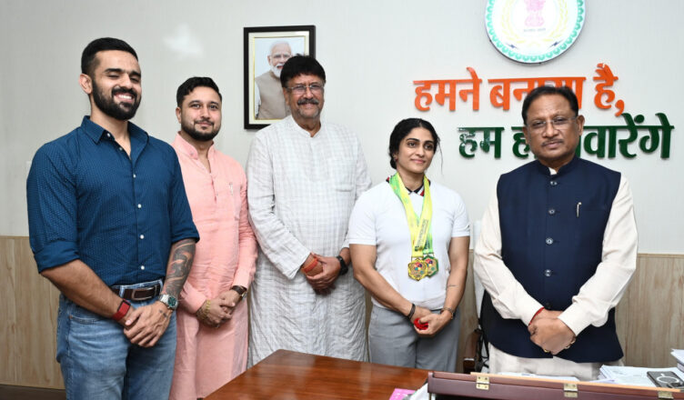 रायपुर 06 अगस्त 2025 : मुख्यमंत्री श्री विष्णुदेव साय से उनके निवास कार्यालय में एशियन अफ्रीकन पैसिफिक पावरलिफ्टिंग चैंपियनशिप की स्वर्ण पदक विजेता सुश्री नमी राय पारेख ने मुलाकात की। मुख्यमंत्री श्री साय को रायपुर निवासी सुश्री नमी राय पारेख ने बताया कि 05 से 13 जुलाई तक जापान के हिमेजी में एशियन पॉवरलिफ्टिंग एसोसिएशन द्वारा एशियन अफ्रीकन पैसिफिक पावरलिफ्टिंग चैंपियनशिप का आयोजन किया गया था। इस चैंपियनशिप में उन्होंने 57 किलोग्राम डेडलिफ्ट वर्ग में स्वर्ण पदक हासिल किया है।