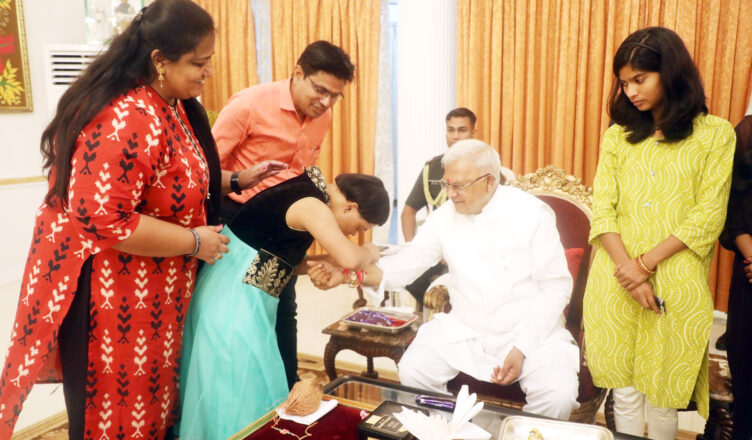 भोपाल : शनिवार, अगस्त 9, 2025 : राज्यपाल श्री मंगुभाई पटेल की गरिमामय उपस्थिति में राजभवन में रक्षाबंधन पर्व मनाया गया। राज्यपाल श्री पटेल को भोपाल के एस.ओ.एस. बालग्राम, नेशनल एसोसिएशन फॉर द ब्लाइंड की बालिकाओं और प्रजापिता ब्रह्मकुमारी ईश्वरीय विश्वविद्यालय की बहनों ने राखी बांधी।
