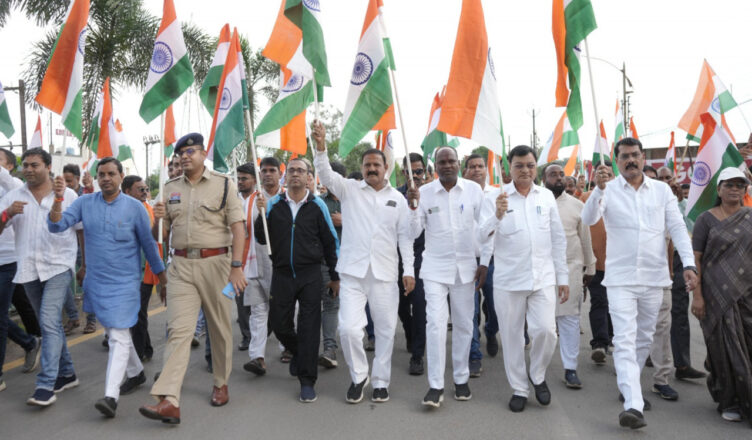 रायपुर, 14 अगस्त 2025 : वाणिज्य उद्योग व श्रम मंत्री श्री लखन लाल देवांगन के मुख्य आतिथ्य में राष्ट्रव्यापी हर घर तिरंगा अभियान के तहत आज कोरबा नगरीय क्षेत्र के घण्टाघर के ओपन थियेटर मैदान में तिरंगा यात्रा का आयोजन किया गया। कैबिनेट मंत्री श्री देवांगन ने तिरंगा यात्रा को हरी झंडी दिखाकर रवाना किया। यह रैली घंटाघर स्थित ओपन थियेटर मैदान से प्रारम्भ होकर शहर के प्रमुख चौक महाराणा प्रताप चौराहे से होते हुए वापस ओपन थियेटर मैदान में समाप्त हुई।
