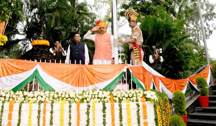 भोपाल : शुक्रवार, अगस्त 15, 2025 : मुख्यमंत्री डॉ. मोहन यादव ने 79वें स्वतंत्रता दिवस पर मुख्यमंत्री निवास परिसर में ध्वजारोहण किया। मुख्यमंत्री डॉ. यादव ने राष्ट्रीय ध्वज फहराकर सलामी ली। इस अवसर पर मुख्यमंत्री सचिवालय तथा निवास कार्यालय के अधिकारी और कर्मचारी उपस्थित थे।