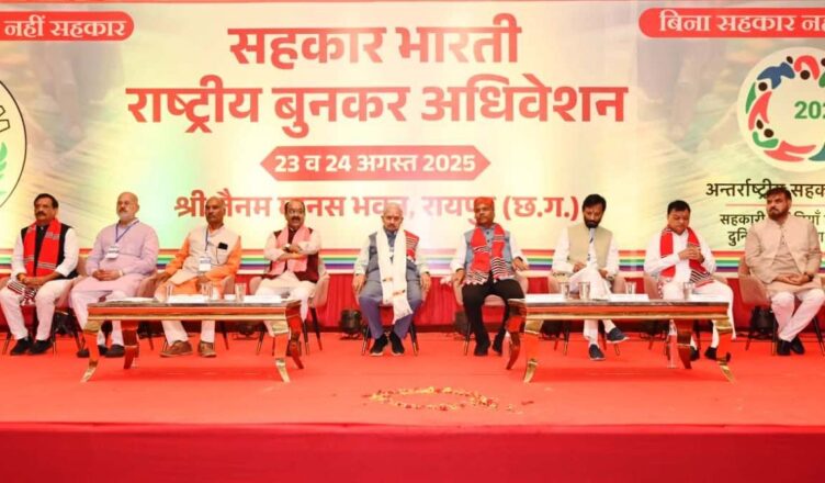 रायपुर, 23 अगस्त 2025 : उप मुख्यमंत्री श्री अरुण साव, सहकारिता मंत्री श्री केदार कश्यप और श्रम मंत्री श्री लखन लाल देवांगन आज राष्ट्रीय बुनकर अधिवेशन के उद्घाटन सत्र में शामिल हुए। सहकार भारती द्वारा राजधानी रायपुर के जैनम मानस भवन में 23 अगस्त और 24 अगस्त को देश में पहली बार राष्ट्रीय बुनकर अधिवेशन का आयोजन किया गया है। इसमें 28 राज्यों से विभिन्न बुनकर संघों के एक हजार से अधिक प्रतिनिधि भाग ले रहे हैं।