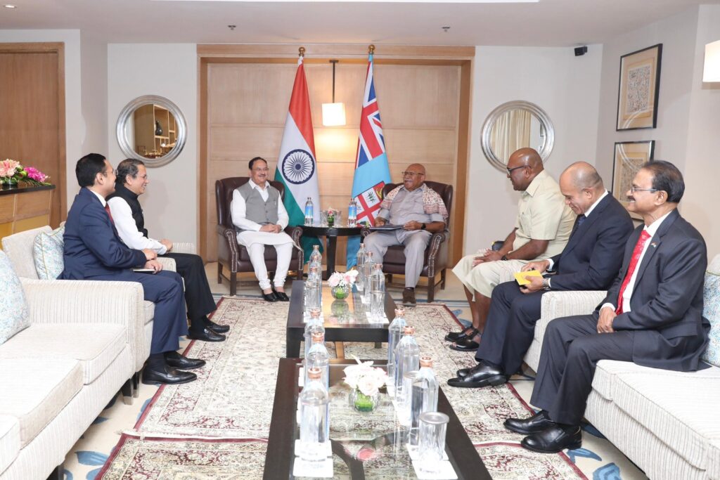 जेपी नड्डा ने इस मुलाकात को लेकर सोशल मीडिया प्लेटफॉर्म एक्स पर जानकारी साझा की और कहा कि आज नई दिल्ली में फिजी के प्रधानमंत्री सिटिवेनी लिगामामादा राबुका से ‘भाजपा को जानें’ पहल के अंतर्गत भेंट हुई। यह मुलाकात पार्टी-स्तरीय संबंधों को सुदृढ़ करने पर केंद्रित रही। इस दौरान मैंने भारतीय जनता पार्टी की विचारधारा, संगठनात्मक संरचना और भारत के विकास में पार्टी की भूमिका के बारे में विस्तार से जानकारी साझा की। स्वास्थ्य सेवा क्षेत्र में सहयोग बढ़ाने को लेकर भी व्यापक चर्चा हुई। हमें विश्वास है कि दोनों देशों के आपसी हित में यह साझेदारी और मजबूत होगी।