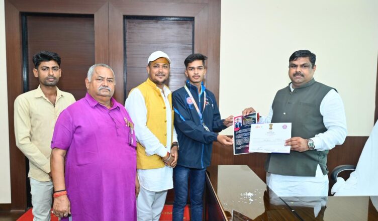 शासकीय कचना धुरवा कॉलेज, छुरा जिला – गरियाबंद में बी कॉम तीसरे सेमेस्टर के छात्र श्री ओमप्रकाश सेन, ग्राम दादरगांव पुराना निवासी हैं। कैम्प से लौटने के उपरांत उन्होंने मंत्री श्री यादव से मुलाकात की। मंत्री श्री यादव ने ओमप्रकाश सेन को राष्ट्रीय स्तर पर छत्तीसगढ़ की भागीदारी हेतु हार्दिक शुभकामनाएं देते हुए कहा कि युवा शक्ति ही देश का भविष्य है। प्रदेश के छात्र राष्ट्रीय मंचों पर सहभागिता कर समाज और राज्य का नाम रोशन कर रहे हैं। उन्होंने श्री ओमप्रकाश सेन के उज्ज्वल भविष्य की कामना करते हुए आगे भी इसी तरह सामाजिक व शैक्षणिक गतिविधियों में सक्रिय योगदान देते हुए आगे बढ़ते रहने के लिए प्रेरित और प्रोत्साहित किया।