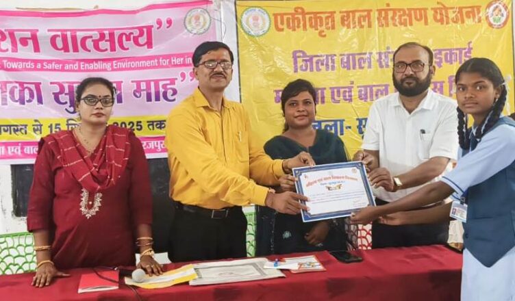 बालिका सुरक्षा माह के अन्तर्गत विकासखण्ड सूरजपुर के ग्राम पंचायतों में बाल अपराध बाल अधिकार, बाल संरक्षण, बाल विवाह, बाल श्रम, भ्रुण हत्या, लैंगिक अपराध एवं बालिकाओं के लिंगानुपात, गुड टच बैड टच. मानव तस्करी, सोशल मीडिया मोबाइल से दूरी के के संबंध में जानकारी प्रदान की गई। बालिका सुरक्षा माह का प्रारंभ में विकासखण्ड सूरजपुर के शासकीय हायर सेकेण्डरी विद्यालय केतका से की गई, जिसमें जिला बाल संरक्षण अधिकारी के द्वारा बालिकाओं को लैंगिक अपराधों से बालिका का संरक्षण अधिनियम 2012 (पॉक्सो एक्ट) के बारे में जानकारी प्रदान की गई।