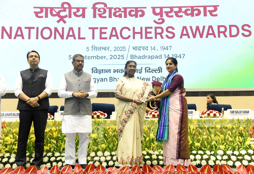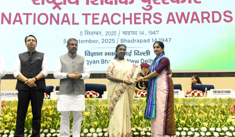 नई दिल्ली (PIB) : राष्ट्रपति श्रीमती द्रौपदी मुर्मु ने आज (5 सितंबर, 2025) शिक्षक दिवस के अवसर पर नई दिल्ली में आयोजित एक समारोह में देश भर के शिक्षकों को राष्ट्रीय पुरस्कार प्रदान किए।