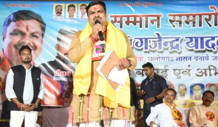 रायपुर, 07 सितम्बर 2025 : स्कूल शिक्षा, ग्रामोद्योग, विधि एवं विधायी मंत्री श्री गजेन्द्र यादव ने आज रिसाली दशहरा मैदान, भिलाई में छत्तीसगढ़ झेरिया यादव समाज द्वारा आयोजित विशाल अभिनंदन समारोह में शामिल होकर समाज के विकास हेतु कई घोषणाएं कीं। उन्होंने चार सामुदायिक भवनों के निर्माण के लिए प्रत्येक को 20-20 लाख रुपये, कुल 80 लाख रुपये तथा 5 लाख रुपये की स्वेच्छानुदान राशि देने की घोषणा की। इसके अतिरिक्त उन्होंने दुर्ग स्थित पचरीपारा में आयोजित सम्मान समारोह में यादव महिला छात्रावास निर्माण हेतु 30 लाख रुपये देने की घोषणा की।