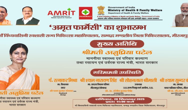 लखनऊ 20 सितंबर 2025 (SHABD):केंद्रीय मंत्री अनुप्रिया पटेल ने आज मिर्जापुर के जिला मंडलीय अस्पताल पहुंचकर जिले की पहली अमृत फार्मेसी का विधिवत उद्घाटन किया। इससे पहले अस्पताल परिसर में जन औषधि केंद्र और महिला अस्पताल में जन औषधि केंद्र संचालित थे। अमृत फार्मेसी के जरिए अब मरीजों को ब्रांडेड दवाएं सस्ते दामों में उपलब्ध होंगी, जिससे गरीब और जरूरतमंद मरीज भी महंगी दवाओं का लाभ उठा सकेंगे। केंद्रीय मंत्री अनुप्रिया पटेल ने जनपद वासियों को यह बड़ी सौगात बताते हुए कहा कि कैंसर और हृदय रोग जैसी गंभीर बीमारियों में प्रयुक्त ब्रांडेड दवाएं अब अधिक किफायती कीमतों पर मिलेंगी। मंडलीय अस्पताल के कैंपस में आयोजित उद्घाटन समारोह में उपस्थित मरीजों ने फार्मेसी से तुरंत लाभ लेना शुरू कर दिया। यह पहल केंद्र सरकार की स्वास्थ्य योजनाओं का हिस्सा है और मिर्जापुर वासियों के लिए वरदान साबित होगी। अमृत फार्मेसी से जिले में स्वास्थ्य सेवाओं की पहुँच और मरीजों की आर्थिक राहत दोनों सुनिश्चित होंगी।