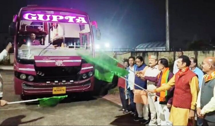 रायपुर, 01 अक्टूबर 2025 : छत्तीसगढ़ शासन द्वारा संचालित श्रीरामलला दर्शन (अयोध्या धाम) योजना के तहत 30 सितंबर की शाम को बस्तर जिले के कुल 87 तीर्थ यात्रियों को टाउन हॉल के सामने बस से रवाना किया गया। सांसद श्री महेश कश्यप, नगर निगम महापौर श्री संजय पांडे ने श्रीरामलला दर्शन योजना के यात्रियों को पुष्प भेंट कर सुखद यात्रा की शुभकामनाएं दी। यात्रा के प्रारम्भ होने से पूर्व सभी यात्रियों का स्वास्थ्य परीक्षण भी किया गया।