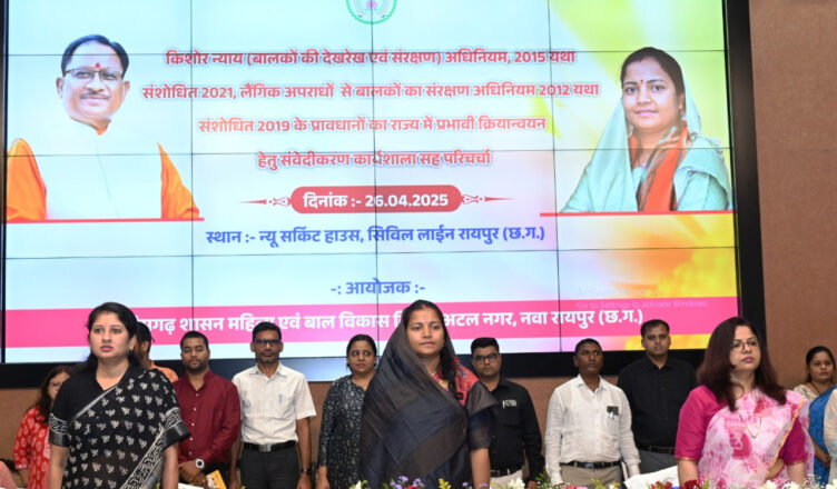 रायपुर, 26 अप्रैल 2025 : रायपुर स्थित न्यू सर्किट हाउस में आज महिला एवं बाल विकास मंत्री श्रीमती लक्ष्मी राजवाड़े के मुख्य आतिथ्य में किशोर न्याय (बालकों की देखरेख एवं संरक्षण) अधिनियम, 2015 तथा लैंगिक अपराधों से बालकों का संरक्षण अधिनियम, 2012 के प्रति जागरूकता बढ़ाने हेतु एक दिवसीय कार्यशाला-सह-परिचर्चा का आयोजन किया गया। मुख्य अतिथि श्रीमती राजवाड़े ने कहा, बच्चों के अधिकारों की रक्षा छत्तीसगढ़ सरकार की सर्वाेच्च प्राथमिकता है।