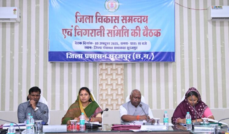 मंत्री श्रीमती लक्ष्मी राजवाड़े की अध्यक्षता में आज जिला खनिज संस्थान न्यास (DMF) सूरजपुर की शासी परिषद की बैठक भी जिला पंचायत कार्यालय में संपन्न हुई। बैठक में सांसद श्री चिंतामणि महराज, जिला पंचायत अध्यक्ष श्रीमती चंद्रमणि पैकरा, नगर पालिका अध्यक्ष श्रीमती कुसुमलता राजवाड़े, कलेक्टर सहित जिले के जनप्रतिनिधि एवं अधिकारी उपस्थित रहे।