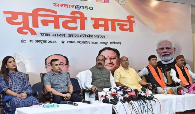 उप मुख्यमंत्री श्री साव ने प्रेस-कॉन्फ्रेंस में बताया कि केन्द्रीय युवा कार्यक्रम और खेल मंत्रालय ने 6 अक्टूबर 2025 को सरदार@150 यूनिटी मार्च (Sardar@150 Unity March) की शुरुआत की है। यह भारत सरकार और ‘मेरा युवा भारत’ (MY Bharat) की पहल है, जो लौहपुरूष सरदार वल्लभभाई पटेल की 150वीं जयंती को समर्पित है। इस राष्ट्रव्यापी कार्यक्रम का उद्देश्य युवाओं में एकता, देशभक्ति और कर्तव्य भावना को जागृत करना है। सरदार पटेल ने जिस तरह बिखरे हुए भारत को एक भारत बनाया, उसी भावना को यह पदयात्रा आगे बढ़ाएगी। इस अभियान के जरिए युवाओं को एक भारत और आत्मनिर्भर भारत के आदर्श को अपनाने के लिए प्रेरित किया जाएगा।