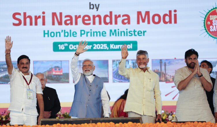 पिछले सोलह महीनों में आंध्र प्रदेश में हुए तेज विकास पर प्रकाश डालते हुए, केंद्र और राज्य सरकारों के तहत अभूतपूर्व प्रगति के बारे में बताते हुए, श्री मोदी ने कहा कि दिल्ली और अमरावती मिलकर विकास को गति देने के लिए काम कर रहे हैं। श्री मोदी ने दोहराते हुए कहा कि 2047 तक भारत निश्चित रूप से एक विकसित राष्ट्र होगा और 21वीं सदी भारत और उसके 140 करोड़ नागरिकों की है। उन्होंने सड़क, बिजली, रेलवे, राजमार्ग और व्यापार से संबंधित कई परियोजनाओं के उद्घाटन और शिलान्यास की घोषणा की। ये पहल पूरे राज्य में कनेक्टिविटी को मजबूत करेंगी, औद्योगिक विकास को बढ़ावा देंगी और नागरिकों के जीवन को आसान बनाएंगी। प्रधानमंत्री ने जोर देकर कहा कि इन परियोजनाओं से कुरनूल और आसपास के क्षेत्रों को बहुत लाभ होगा। इसके लिए उन्होंने राज्य के लोगों को बधाई दी।