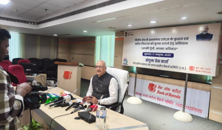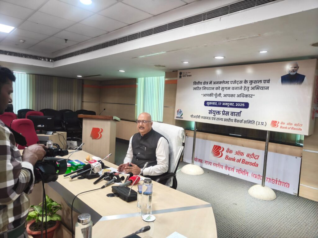 लखनऊ (PIB) : माननीया वित्त मंत्री, भारत सरकार द्वारा वित्तीय सेवाएँ विभाग, वित्त मंत्रालय, भारत सरकार के सहयोग से भारतीय रिज़र्व बैंक (आरबीआई); भारतीय बीमा नियामक एवं विकास प्राधिकरण (आईआरडीएआई); भारतीय प्रतिभूति एवं विनिमय बोर्ड (सेबी) और कॉर्पोरेट मामलों के मंत्रालय के अंतर्गत निवेशक शिक्षा एवं संरक्षण निधि प्राधिकरण (आईईपीएफ़ए) के वित्तीय क्षेत्र में बिना दावे वाली संपत्तियों हेतु अक्टूबर-दिसंबर 2025 तक तीन माह का राष्ट्रव्यापी अभियान प्रारंभ किया गया है। इस अभियान का शीर्षक “आपकी पूंजी, आपका अधिकार” है। यह जानकारी बैंक ऑफ़ बड़ौदा के संयोजन में कार्यरत राज्य स्तरीय बैंकर्स समिति (एसएलबीसी), लखनऊ द्वारा बैंक के “बड़ौदा हाउस”, गोमती नगर, स्थित अंचल कार्यालय में आयोजित प्रेस वार्ता में दी गई।