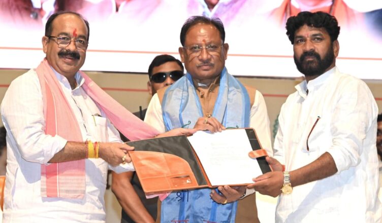 रायपुर, 27 अप्रैल 2025 : मुख्यमंत्री श्री विष्णु देव साय आज राजधानी रायपुर के डीडीयू ऑडिटोरियम में आयोजित गरिमामय समारोह में छत्तीसगढ़ तेलघानी विकास बोर्ड के नव नियुक्त अध्यक्ष श्री जितेन्द्र कुमार साहू के पदभार ग्रहण एवं अभिनंदन समारोह में शामिल हुए। इस अवसर पर उन्होंने श्री साहू को उनके नए दायित्व के लिए हार्दिक बधाई एवं शुभकामनाएं दीं।