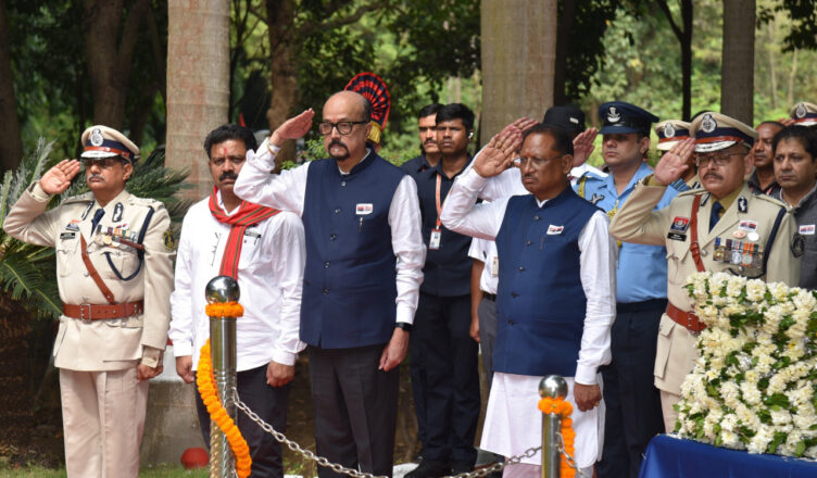 रायपुर, 21 अक्टूबर 2025 : राज्यपाल श्री रमेन डेका और मुख्यमंत्री श्री विष्णु देव साय आज पुलिस स्मृति दिवस के अवसर पर राजधानी रायपुर स्थित शहीद वाटिका पहुंचे। उन्होंने अमर जवान स्तंभ पर पुष्पांजलि अर्पित कर शहीद वीर जवानों को नमन किया। उन्होंने शहीदों के सर्वोच्च बलिदान को स्मरण करते हुए उनके परिजनों के प्रति सम्मान और कृतज्ञता व्यक्त की।