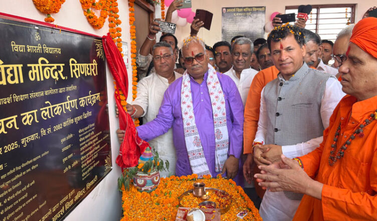 जयपुर, 23 अक्टूबर। बालोतरा जिले के सिणधरी स्थित विद्या भारती द्वारा संचालित आदर्श विद्या मंदिर में आज नवनिर्मित भवन का लोकार्पण संतो के सानिध्य में बड़े धूमधाम से किया गया। कार्यक्रम में लोकार्पण एवं भामाशाह सम्मान समारोह का आयोजन हुआ, जिसमें प्रदेश के कई गणमान्य अतिथि शामिल हुए।