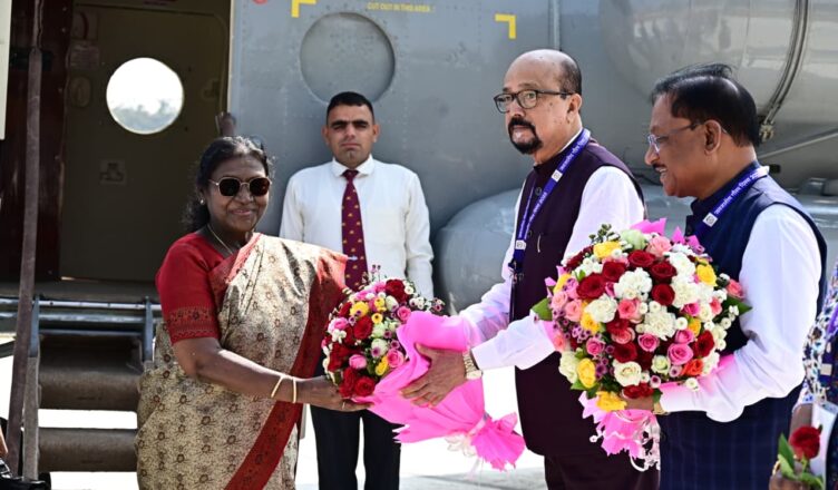 रायपुर, 20 नवम्बर 2025 : राष्ट्रपति श्रीमती द्रौपदी मुर्मु के अंबिकापुर आगमन पर गांधी स्टेडियम हेलीपेड में राज्यपाल श्री रमेन डेका ने पुष्पगुच्छ भेंट कर उनका आत्मीय स्वागत किया। इस अवसर पर मुख्यमंत्री श्री विष्णुदेव साय भी उपस्थित थे।