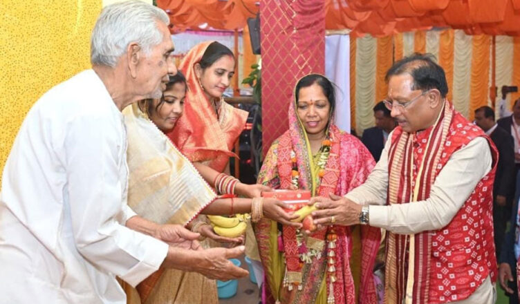 रायपुर, 26 नवम्बर 2025 : मुख्यमंत्री श्री विष्णुदेव साय आज महासमुंद जिले के बसना तहसील अंतर्गत ग्राम सलखण्ड में ग्रामीणों द्वारा आयोजित महालक्ष्मी देवी पूजन कार्यक्रम में शामिल हुए। इस अवसर पर मुख्यमंत्री श्री साय ने मां लक्ष्मी से प्रार्थना करते हुए प्रदेशवासियों के सुख-समृद्धि और उत्तम स्वास्थ्य की कामना की। पूजन कार्यक्रम के दौरान पुजारियों द्वारा पारंपरिक मंत्रोच्चार किया गया, जिसमें मुख्यमंत्री ने श्रद्धापूर्वक भाग लिया। इसके बाद उन्होंने ग्रामीणों से आत्मीय मुलाकात कर उनकी समस्याओं और स्थानीय विकास कार्यों की जानकारी ली। इस अवसर पर मुख्यमंत्री श्री विष्णुदेव साय की धर्मपत्नी श्रीमती कौशल्या साय एवं रायपुर उत्तर विधायक श्री पुरंदर मिश्रा भी साथ थे।