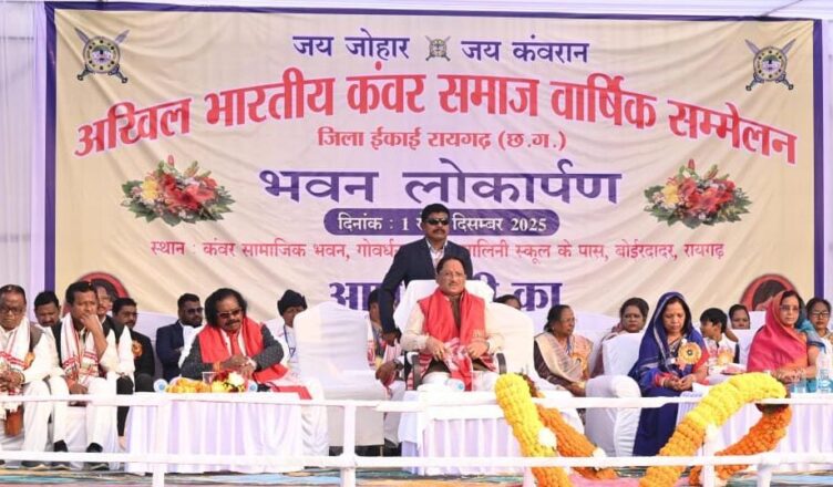 रायपुर, 02 दिसम्बर 2025 :मुख्यमंत्री श्री विष्णुदेव साय आज रायगढ़ के बोईरदादर में आयोजित अखिल भारतीय कंवर समाज के वार्षिक सम्मेलन में मुख्य अतिथि के रूप में शामिल हुए। मुख्यमंत्री श्री साय ने समाज की मांग पर 30 लाख रुपए की लागत से निर्मित सामुदायिक भवन के प्रथम तल का लोकार्पण किया। समाज के वरिष्ठजनों ने मुख्यमंत्री का पारंपरिक रीति-रिवाजों के साथ भव्य स्वागत एवं अभिनंदन किया।