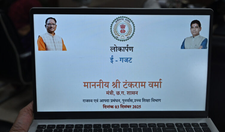 रायपुर, 3 दिसम्बर 2025 : मुख्यमंत्री श्री विष्णुदेव साय के नेतृत्व में प्रशासनिक प्रक्रियाओं को सरल, पारदर्शी और त्वरित बनाने की दिशा में एक और महत्वपूर्ण कदम बढ़ाते हुए राजस्व मंत्री श्री टंकराम वर्मा ने मंत्रालय में ई-गजट ऑनलाईन पोर्टल का शुभारंभ किया। इस अवसर पर राजस्व एवं आपदा प्रबंधन विभाग की सचिव श्रीमती रीना बाबासाहेब कंगाले उपस्थित थीं।