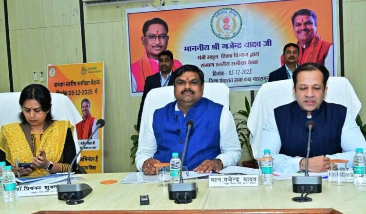 रायपुर, 5 दिसम्बर 2025 :स्कूल शिक्षा मंत्री श्री गजेन्द्र यादव की अध्यक्षता में रायपुर संभाग के स्कूल शिक्षा विभाग की संभागीय समीक्षा बैठक आज महासमुंद के जिला पंचायत कार्यालय के सभागार में सम्पन्न हुई। मंत्री श्री यादव ने कहा कि शिक्षा विभाग का मूल उद्देश्य गुणवत्तापूर्ण अध्ययन-अध्यापन सुनिश्चित करना है और इसके लिए सभी स्तरों पर समर्पित प्रयास आवश्यक हैं। बैठक में सचिव स्कूल शिक्षा विभाग श्री सिद्धार्थ कोमल परदेशी, आयुक्त समग्र शिक्षा डॉ. प्रियंका शुक्ला सहित विभाग के वरिष्ठ अधिकारी, डीईओ, डीएमसी, बीईओ एवं बीआरसी उपस्थित रहे।