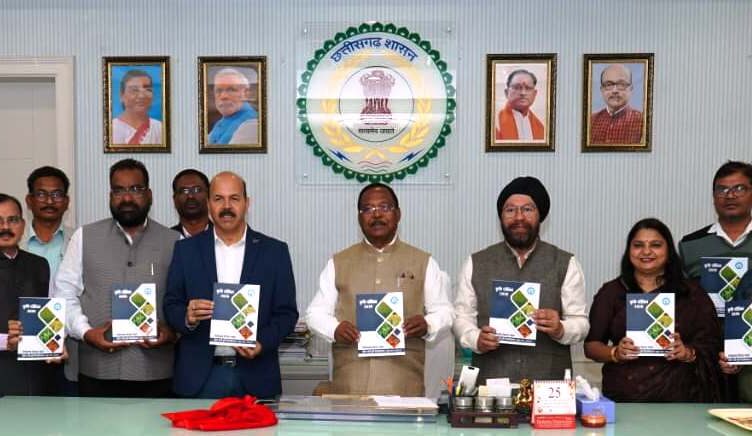 रायपुर, 02 जनवरी 2026 : कृषि मंत्री श्री रामविचार नेताम ने आज यहां नया रायपुर स्थित अपने निवास कार्यालय में इंदिरा गांधी कृषि विश्वविद्यालय द्वारा प्रकाशित कृषि दर्शिका 2026 का विमोचन किया। मंत्री श्री नेताम ने कृषि दर्शिका के प्रकाशन हेतु इंदिरा गांधी कृषि विश्वविद्यालय के कुलपति डॉ. गिरीश चंदेल एवं उनके सहयोगियों को बधाई एवं शुभकामनाएं दीं। कृषि मंत्री ने कहा कि कृषि दर्शिका में इंदिरा गांधी कृषि विश्वविद्यालय द्वारा किये जा रहे अनुसंधान एवं विस्तार कार्यों के साथ ही नवीनतम कृषि प्रौद्योगिकी तथा किसानों के लिए केन्द्र एवं राज्य सरकार द्वारा संचालित विभिन्न योजनाओं की जानकारियों को शामिल किया गया है, जो किसानों के लिए बेहद उपयोगी साबित होगा। उन्होंने आशा व्यक्त की कि कृषि विश्वविद्यालय छत्तीसगढ़ के किसानों के हित में इसी प्रकार निरंतर प्रयासरत रहेगा। कृषि मंत्री श्री नेताम ने इस अवसर पर कृषि विश्वविद्यालय द्वारा प्रकाशित कृषि पंचाग का अवलोकन भी किया।
