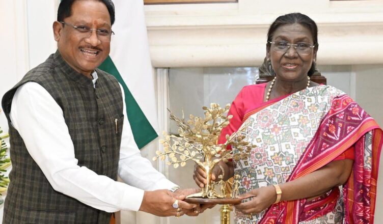 इस अवसर पर मुख्यमंत्री श्री साय ने राष्ट्रपति को छत्तीसगढ़ सरकार द्वारा जनजातीय क्षेत्रों के समग्र विकास, शिक्षा, स्वास्थ्य, आजीविका, बुनियादी ढांचे के विस्तार एवं जनकल्याणकारी योजनाओं की प्रगति से भी अवगत कराया। उन्होंने कहा कि राज्य सरकार जनजातीय समाज को विकास की मुख्यधारा से जोड़ते हुए उनकी सांस्कृतिक पहचान को संरक्षित रखने के लिए निरंतर कार्य कर रही है।