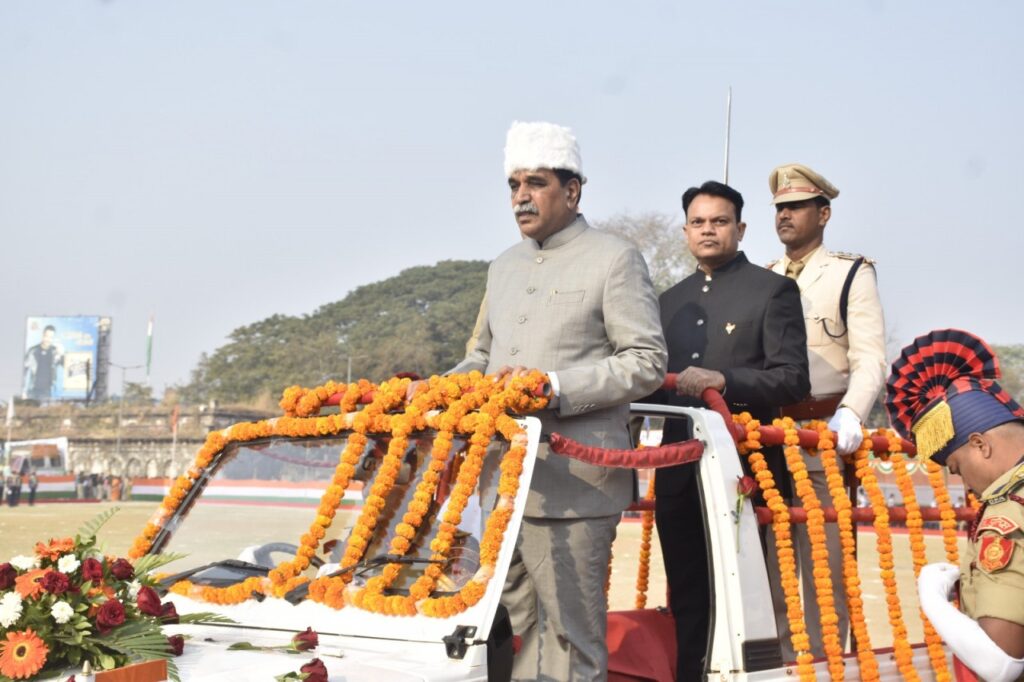 रायपुर, 26 जनवरी 2026 :77वें गणतंत्र दिवस के अवसर पर जिला मुख्यालय खैरागढ़ स्थित राजा फतेह सिंह खेल मैदान में आयोजित मुख्य समारोह में मुख्य अतिथि रायपुर नगर पश्चिम विधायक श्री राजेश मुणत ने राष्ट्रीय ध्वज फहराया और तिरंगे को सलामी दी। इसके पश्चात विधायक श्री मुणत, कलेक्टर श्री इंद्रजीत सिंह चंद्रवाल एवं पुलिस अधीक्षक श्री लक्ष्य शर्मा ने परेड का निरीक्षण किया। सशस्त्र जवानों द्वारा हर्ष फायर कर राष्ट्रपति का जयघोष किया गया।