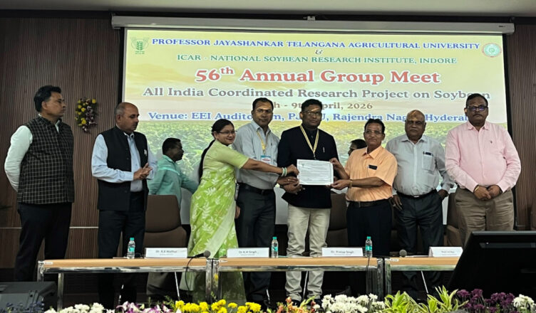 रायपुर,13 अप्रैल, 2026 : इंदिरा गांधी कृषि विश्वविद्यालय, रायपुर में संचालित अखिल भारतीय समन्वित अनुसंधान परियोजना (सोयाबीन) को राष्ट्रीय स्तर पर वर्ष 2023-2025