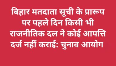 बिहार मतदाता सूची के प्रारूप पर पहले दिन किसी भी राजनीतिक दल ने कोई आपत्ति दर्ज नहीं कराई: चुनाव आयोग 03/08/202503/08/2025Ashish Jha अगस्त 02, पटना (SHABD) : निर्वाचन आयोग ने कहा है कि बिहार में मतदाता सूची के प्रारूप के प्रकाशन के बाद, 24 घंटों [...]